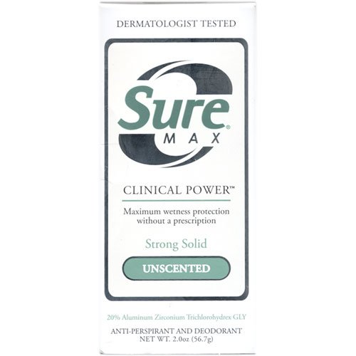 Sure Max Clinical Power Unscented Strong Solid Antiperspirant Deodorant gives you powerful all-day protection you can trust, without an overpowering fragrance. Skin-nurturing conditioners with antioxidants help prevent odor and wetness, even when your underarms are working overtime.